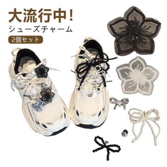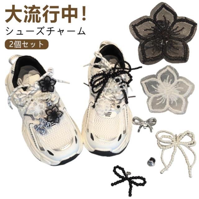 2個セット シューズアクセサリー シューピアス スニーカーアクセサリー スニーカーデコ シューピアス 刺? レース パール リボン 花 可愛い 女性 スニーカー 靴 靴ひも シューパーツ レディース シューチャーム リボン キーリング バレエコア 送料無料
