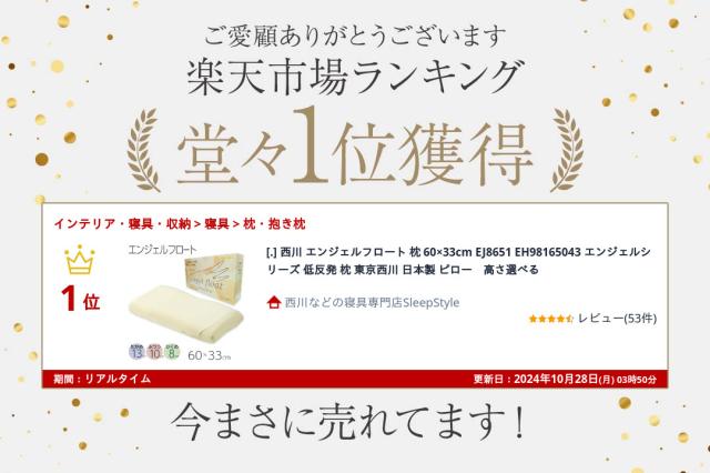 [.] 西川 エンジェルフロート 枕 60×33cm EJ8651 EH98165043 エンジェルシリーズ 低反発 枕 東京西川 日本製 ピロー 高さ選べる