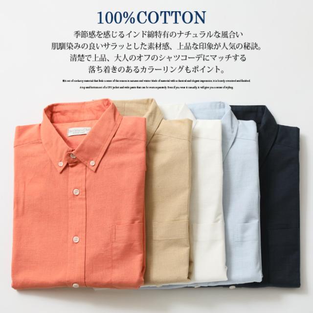 半袖シャツ メンズ 夏 ボタンダウンシャツ インド綿100% コットンシャツ 半端袖シャツ 無地シャツ 白シャツ