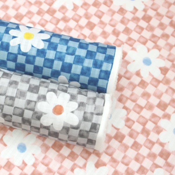 【10cm単位価格】 水彩風 市松 花柄 マーガレット ピケドビー ストライプ綿100% 生地 布 約110cm幅 R6507-2 ゆうパケット2.5m対応 ( ハンドメイド 手作り ワンピース クッションカバー 手芸 甚平 日本製 )