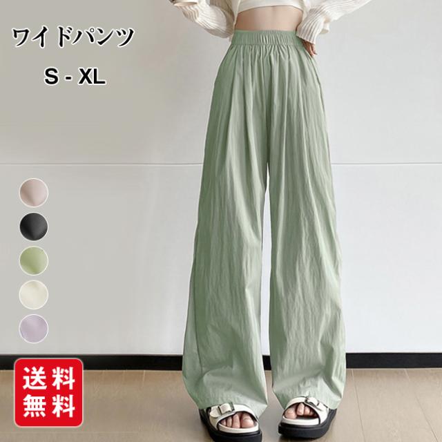 ワイドパンツ プリーツパンツ ウエストゴム レディース ボトムス 美シルエット カラーパンツ 体型カバー 脚長効果 着痩せ ゆったり 大人カジュアル