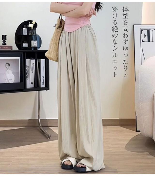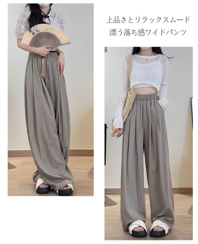 上品さとリラックスムード漂う落ち感ワイドパンツ