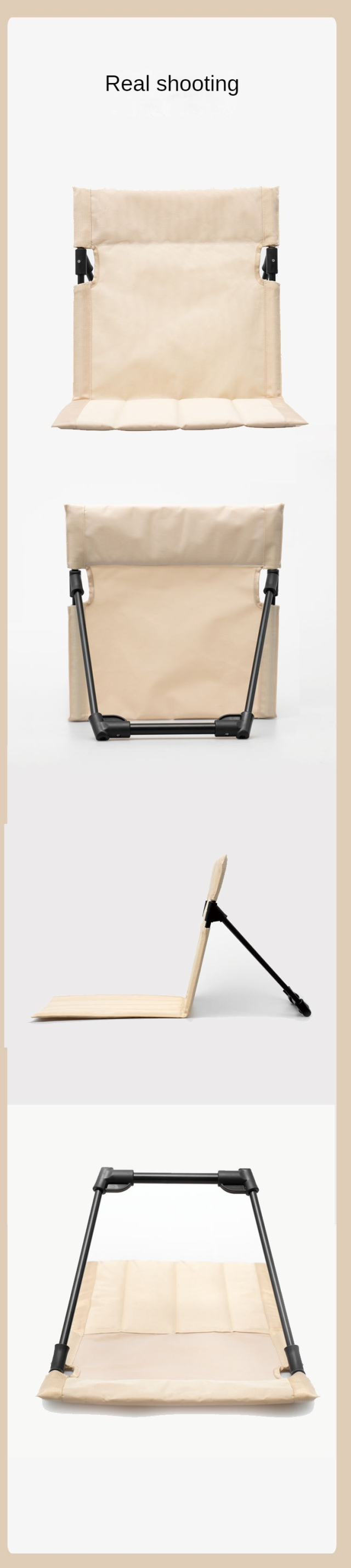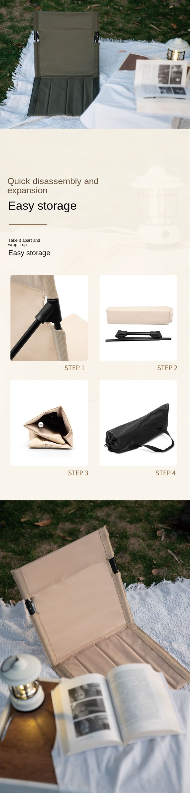 1.収納が簡単、サポートロッド背もたれクッション付き。