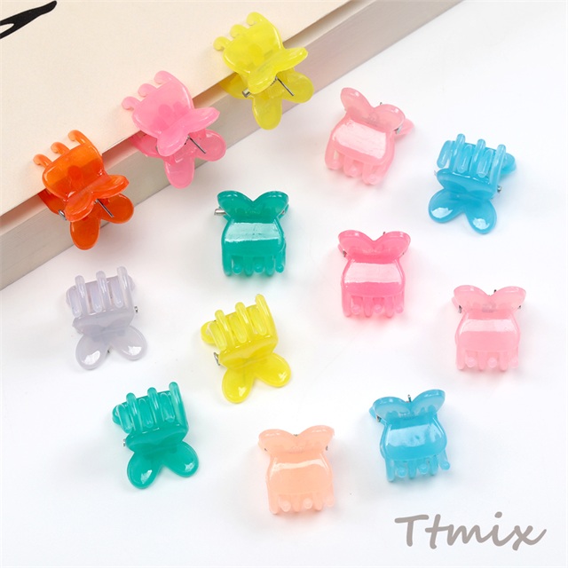 ミニクリップ 蝶々 ヘアクリップ ヘアアクセサリー クリアカラー 春夏カラー ※カラーランダム 約12×13mm(20ヶ)
