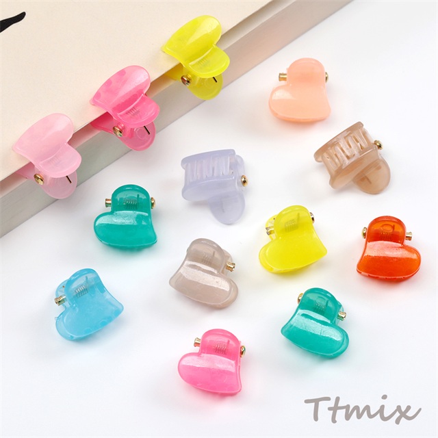 ミニクリップ ハート ヘアクリップ ヘアアクセサリー クリアカラー 春夏カラー ※カラーランダム 約12×13mm(20ヶ)