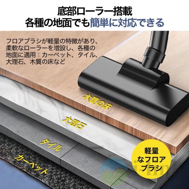 【4種類のヘッド&ノズル】4種類のヘッド&ノズルと延長パイプで自由に組み立て。床用ヘッドは上下左右を自在に回転可能、ベッド・ソファの奥までしっかりキャッチ。ソファなどファブリックの繊維の間のゴミまで吸引します。ブラシで掃くように吸着した細かなゴミを取り除きます。すき間や隅など手の届きにくい場所のゴミを吸引できます。