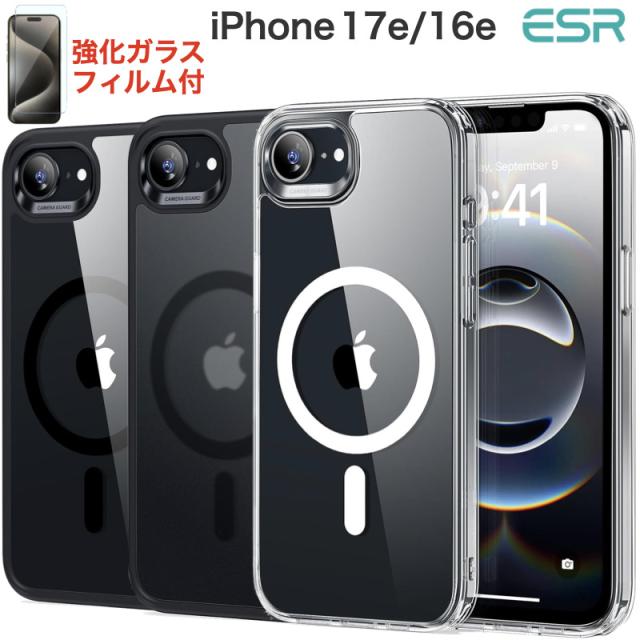 ESR iPhone 17e 16e ケース【ガラスフィルム付き】3倍米軍MIL規格・MagSafe対応 iPhone16eケース 黄変防止 耐衝撃 米軍MIL規格認証 最大7倍の磁力ロック ワイヤレス充電 指紋防止 滑り止め 軽薄型 PC背面TPUバンパー Classicハイブリッドカバー