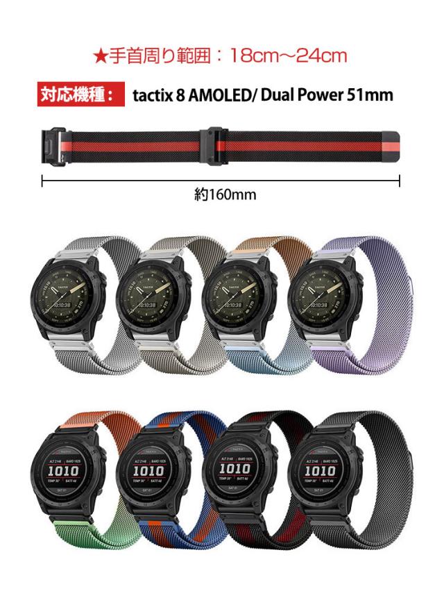 Garmin Descent G2 tactix 8 AMOLED tactix 8 Dual Power 51mm 交換 時計バンド オシャレな 高級ステンレス おしゃれ 替えベルト 綺麗な マルチカラー 磁気吸着 調節可能 簡単装着 人気 おすすめ 交換リストバンド ガーミン 腕時計バンド 交換ベルト