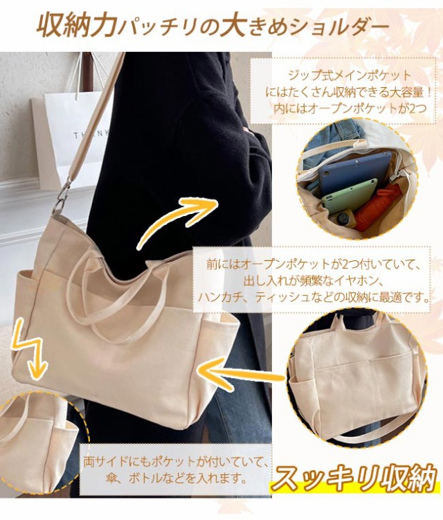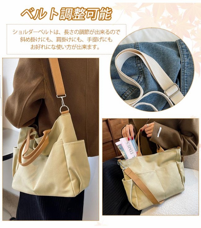 【ポイント5倍!】【春新作】ショルダーバッグ キャンバス トートバッグ 大容量 帆布鞄 レディース メンズ 斜めがけ エコバッグ 肩掛け A4サイズ 軽量 ファッション 通勤 通学