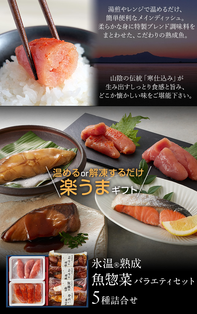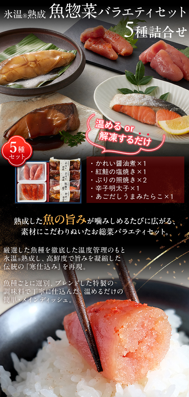 お歳暮 ギフト 氷温熟成 魚惣菜バラエティセット(かれい醤油煮・紅鮭塩焼き・辛子明太子ほか5種詰合せ) プレゼント ギフト 送料無料(北海道・沖縄を除く)
