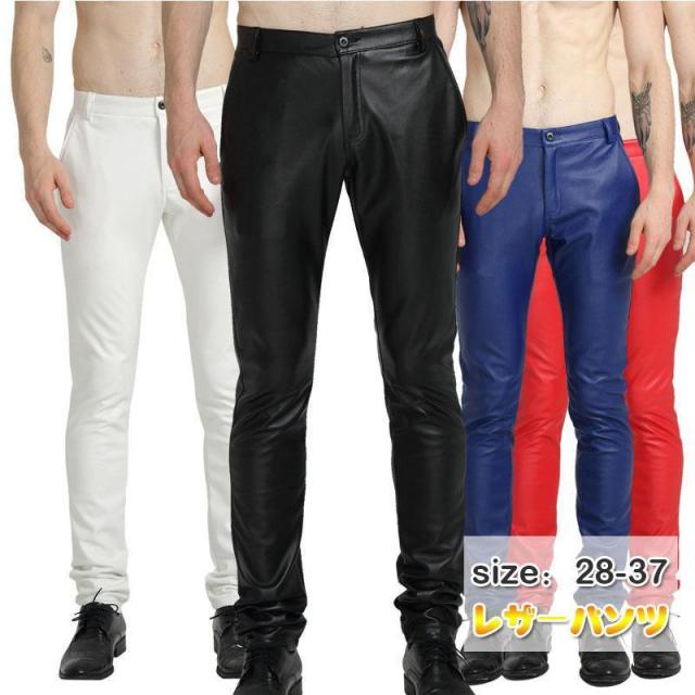 【ポイント5倍!】レザーパンツ 春秋 ボトムス メンズ 革パン 無地 メンズボトム レザパン バイカーパンツ 防寒 メンズパンツ ライダー フェイクレザー 革パンツ