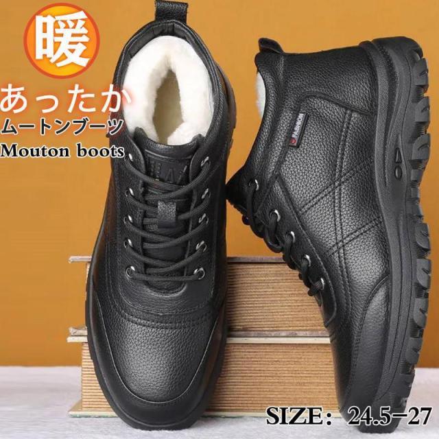 【ポイント5倍!】ムートンブーツ メンズ 靴 裏起毛 防寒靴 防滑 防寒 トレッキング ブーツ レザー ムートンブーツ 暖かい 通学 通勤 防水 冬用ブーツ アウトドア 冬
