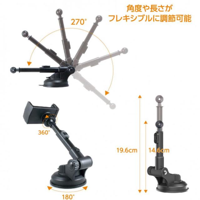 商品詳細:タテ・ヨコの向きを選ばないグリップ式でスマホをしっかりホールドします。角度や高さ・長さがフレキシブルに調節可能です。 生産国:中国 商品サイズ:H144×W85×D75mm 重量:(約)109g