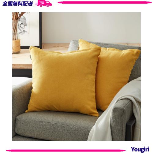 Topfinel クッションカバー リネンっぽい 40×40cm 北欧 おしゃれ 綿麻 無地 ソファ背当て 装飾枕カバー 座布団カバー イエロー 2枚セッ
