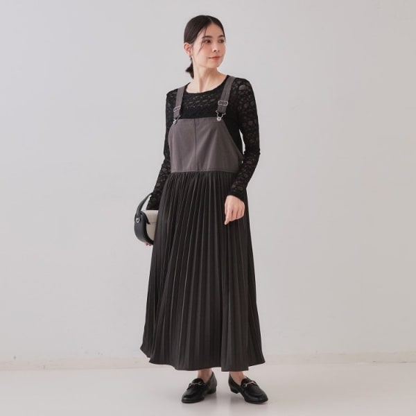 プリーツドッキングジャンパードレス【洗濯機洗い可】