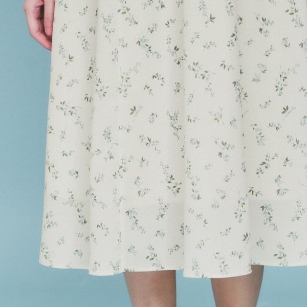 ・柔らかなフラワープリントが施されたVネックフレアワンピースで、女性らしさを引き立てます。