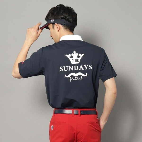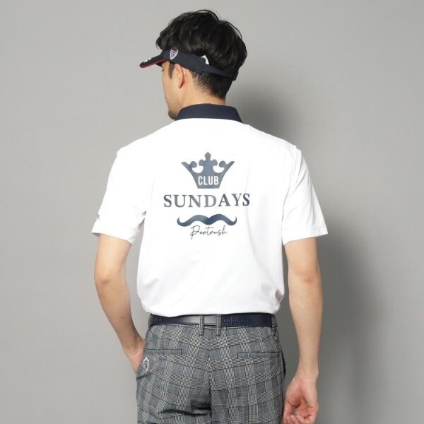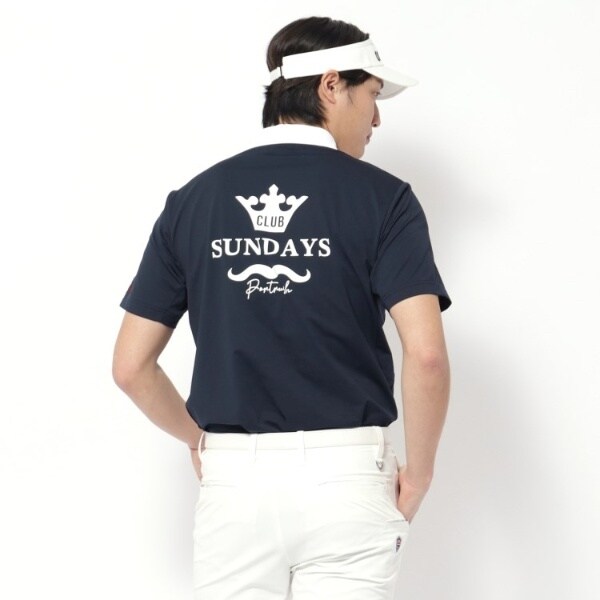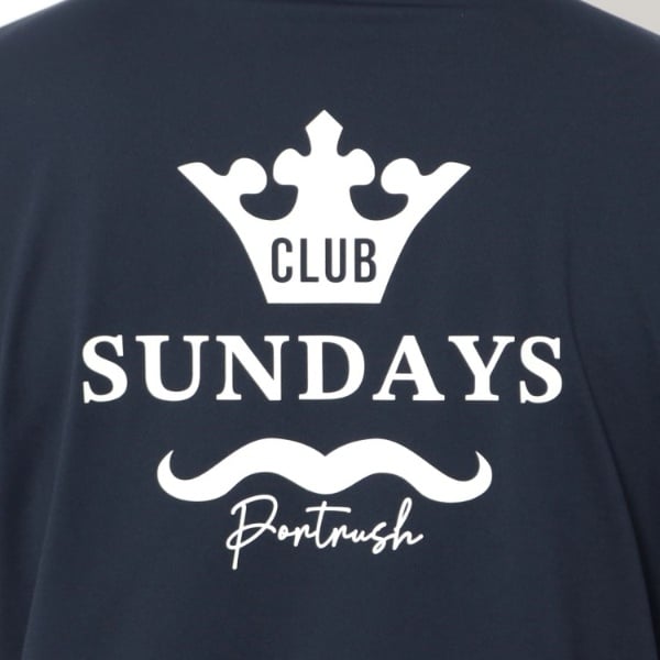 背中に大胆に配されたテーマロゴ「CLUB SUNDAYS」のプリントが、都会的で遊び心のある後ろ姿を演出します。