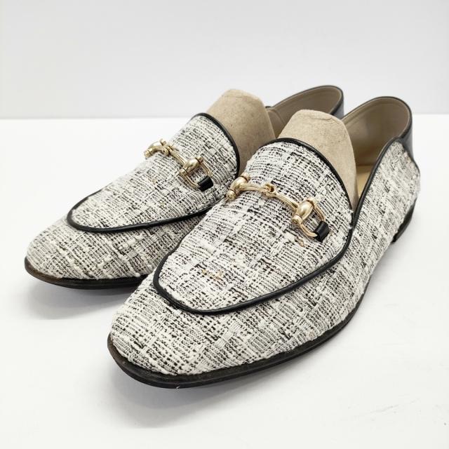 Le Talon ツイードビットローファー サイズ 25 1/2 ローファー ホワイト ブラック レディース ルタロン【中古】5-0210G◎