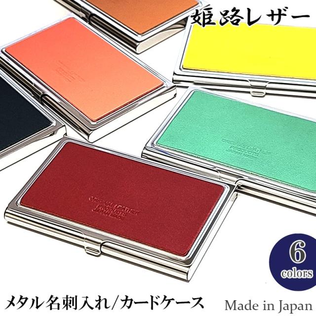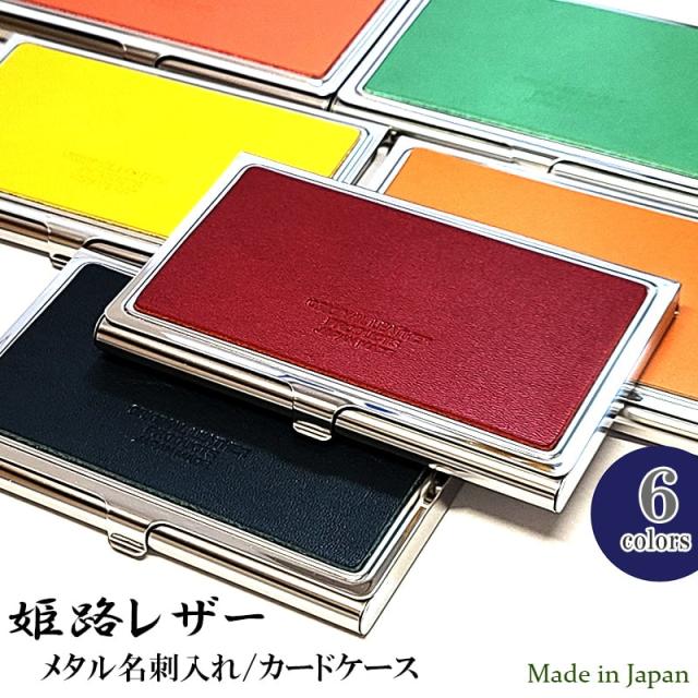 カードケース 姫路レザー 名刺入れ 日本製 本革 メタル おしゃれ 6カラー ピンク ベージュ イエロー ターコイズブルー レッド ネイビー 薄型 国産