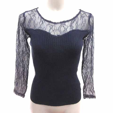 【中古】ロイヤルパーティー ROYAL PARTY ニット カットソー 切替 レース 長袖 F 紺 ネイビー /YK レディース