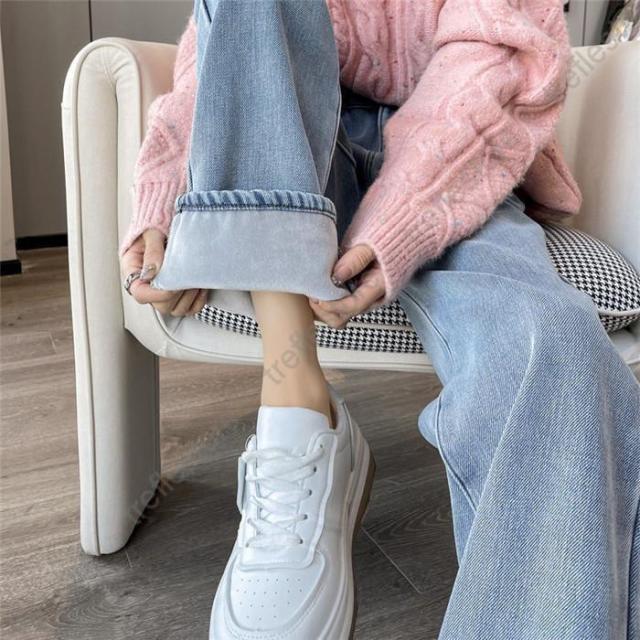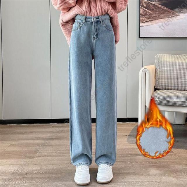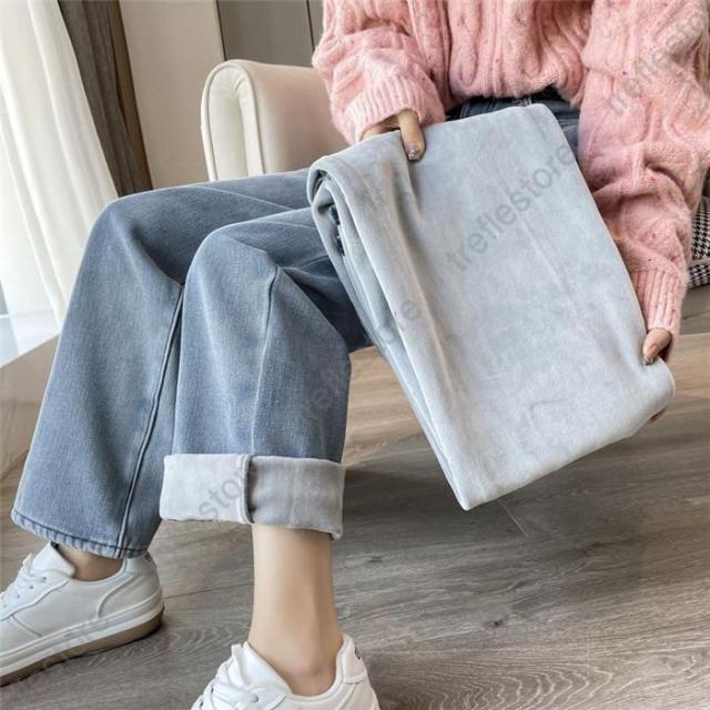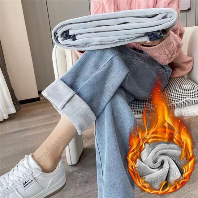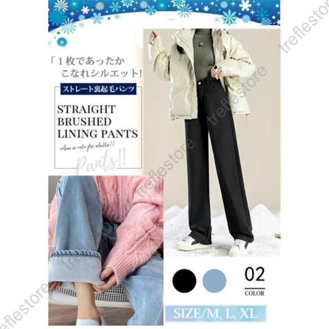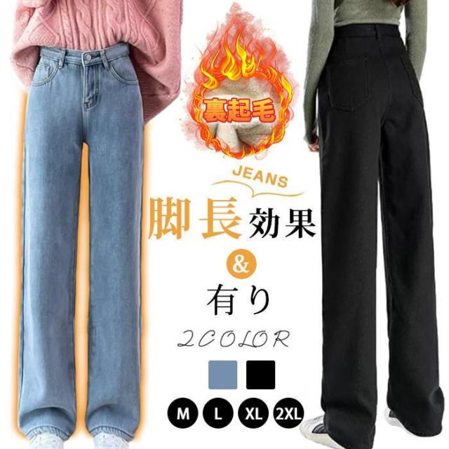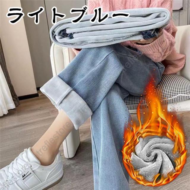 【ポイント5倍!】デニムパンツ レディース 裏起毛 ジーンズ ゆったり 厚手 裏起毛パンツ ストレート 保温 ジーパン 防寒 暖かい ワイドパンツ