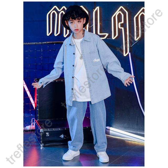 【ポイント5倍!】キッズダンス衣装 ヒップホップ キッズ ダンス衣装 セットアップ HIPHOP デニム 子供 デニムシャツ デニムパン