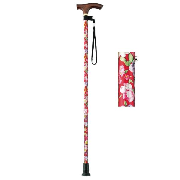 スマイルステッキ(伸縮ステッキ・細身)/赤花柄(マキテック)AS-20RF