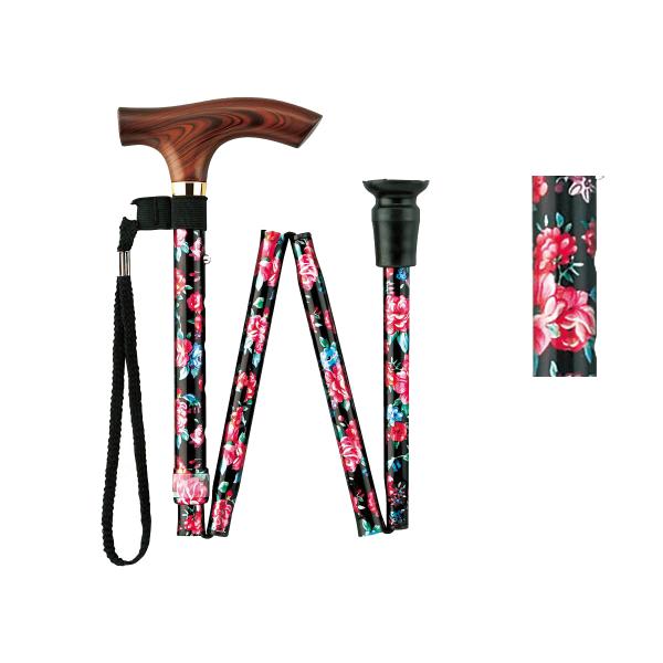 スマイルステッキ(折りたたみステッキ・細身)/黒花柄(マキテック)FS-20KS