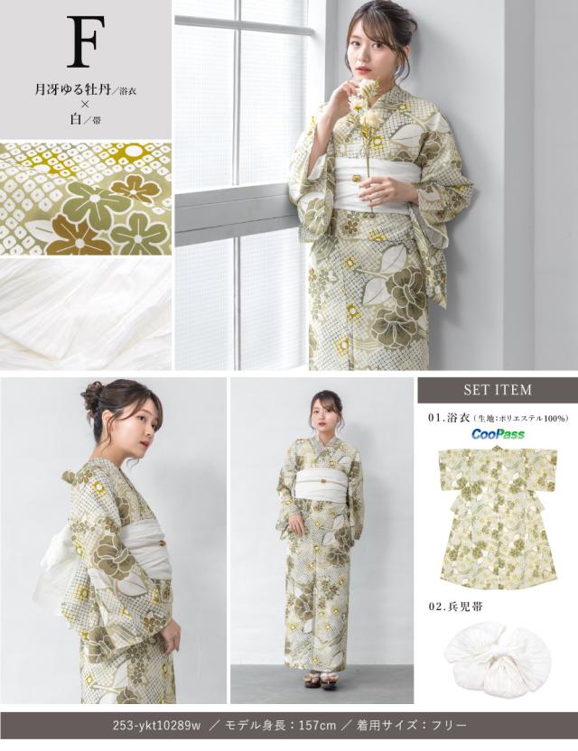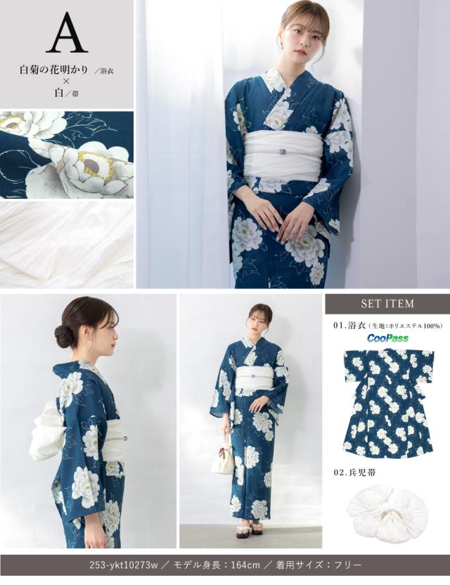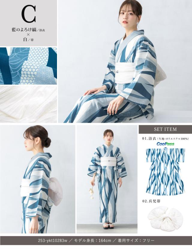 浴衣 セット レディース 浴衣セット 兵児帯 floro 2025 簡単 涼しい 紺 白 青 ベージュ おしゃれ 大人 S フリー 送料無料