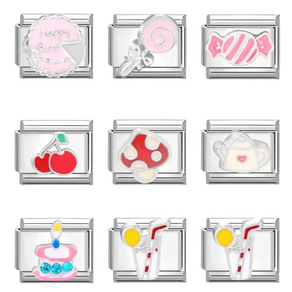 ジュエリー作り用の果物と野菜のビデオモジュール,桜,キノコ,アボカド,イタリアンチャーム,9mmブレスレット,ステンレス鋼