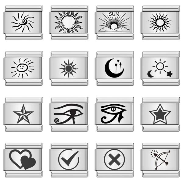 ステンレス鋼のチャーム,自分でできるジュエリーアクセサリー,イタリアのリンク,太陽,月,星,目,心,ファッショナブル,トレンディ,9mm,新しい