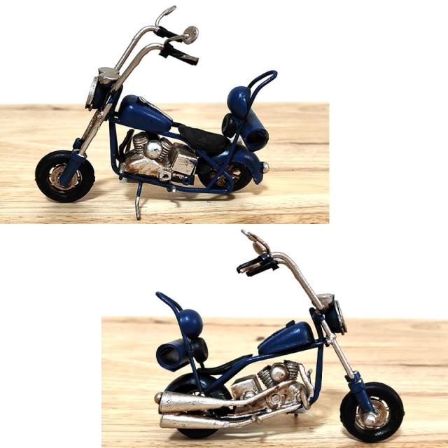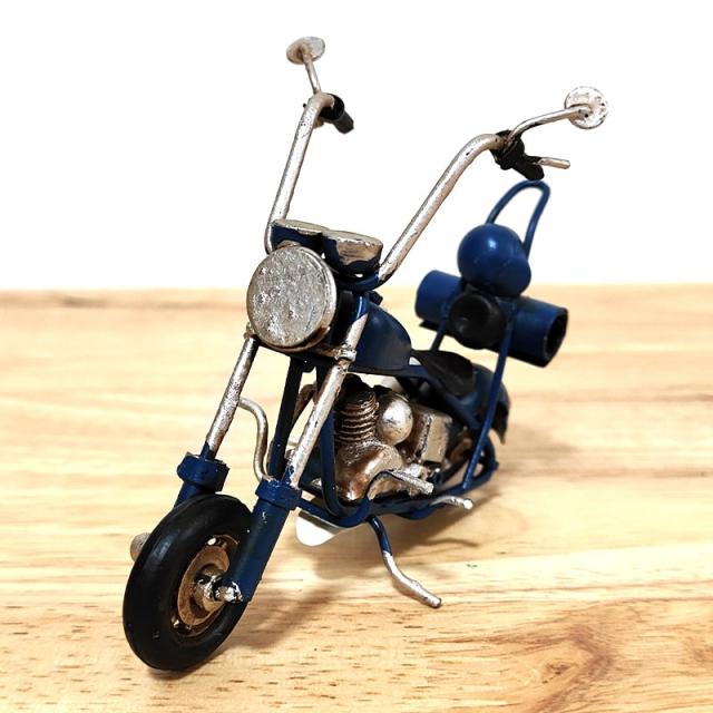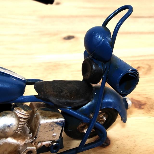 ヴィンテージ バイク チョッパー レトロ ネイビー ブリキ製 オブジェ 置物 おしゃれ アンティーク ビンテージ ブルー ノスタルジックデコ アメリカン