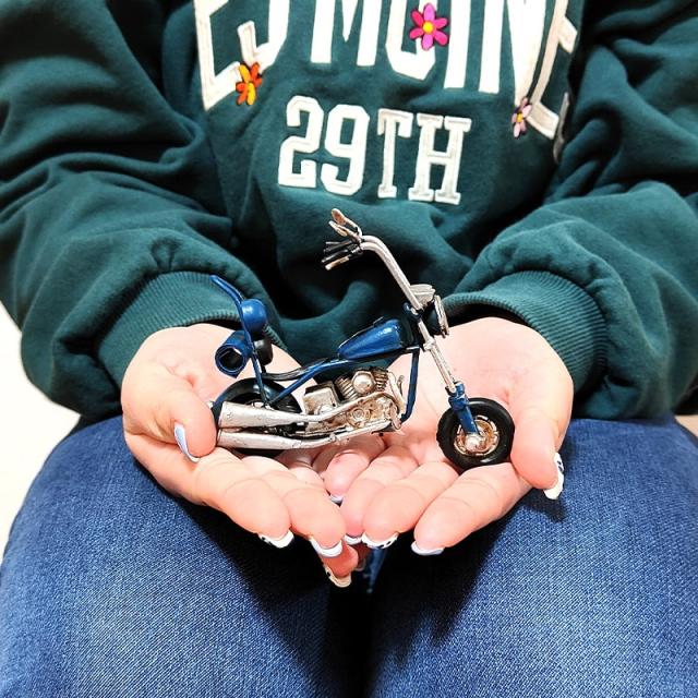 ブリキ製のレトロなバイクのオブジェです。