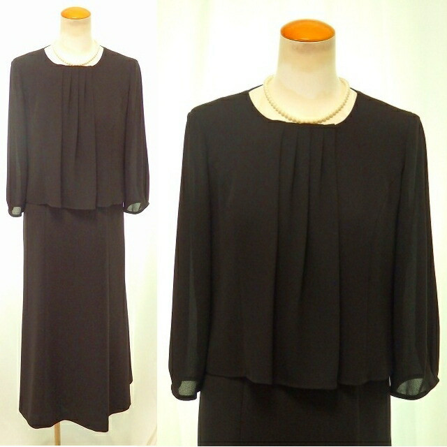 NAPOLINO ナポリーノ ノーカラー衿 OP上部ジョーゼット生地 日本製 ジャケット ワンピース 2点セット ロング丈 ブラックフォーマル アンサンブル