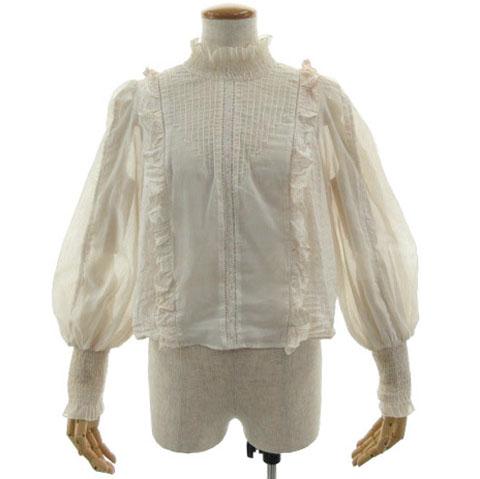 【中古】スナイデル SNIDEL ブラウス フリルネック レース切替え ピンタック 長袖 ライトピンクベージュ F レディース