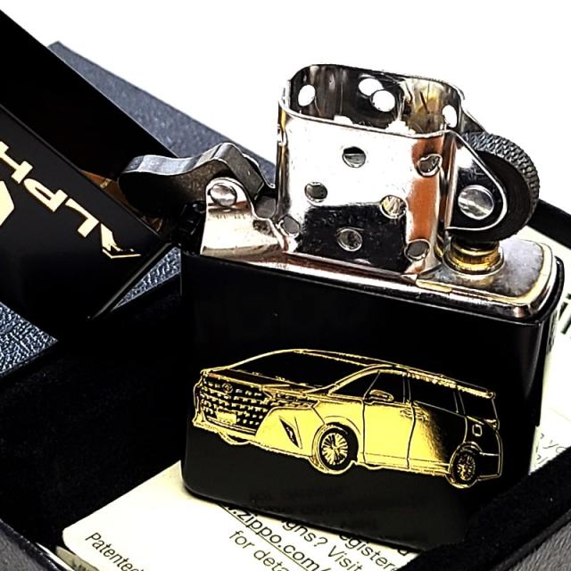 ZIPPO トヨタ アルファード ジッポ ライター TOYOTA 全面監修 ALPHARD 車 艶消し マットブラック 両面加工 ゴールド 彫刻 黒金 おしゃれ
