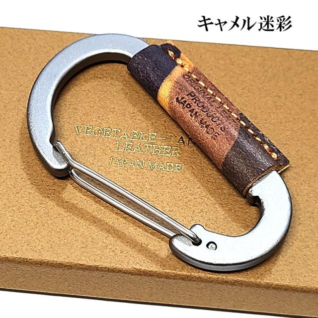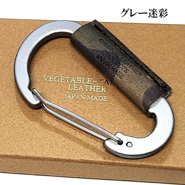 イタリアンレザー カラビナ キーホルダー キャメル迷彩 グレー迷彩 キーリング コンパクト 国産 本革 かっこいい 革小物 ラッピング おしゃれ