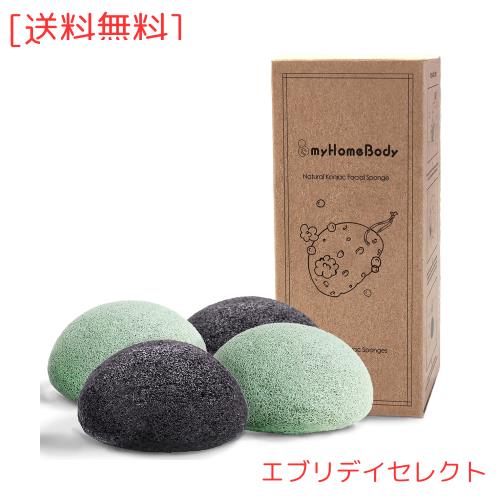 myHomeBody 天然 こんにゃく 洗顔スポンジ - 優しく洗顔&角質除去 - 活性炭とアロエベラ配合 - 2 グリーン + 2 チャコールグレー, 4 パ