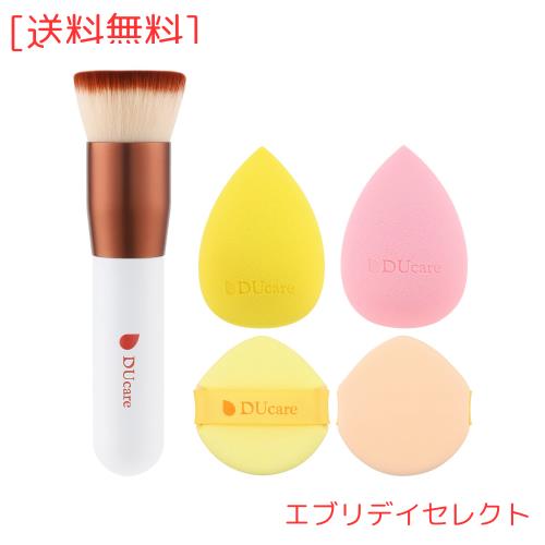 DUcare ドゥケア メイクブラシ ファンデーションブラシ フェイスブラシ トップタイプ 高級タクロンメイクスポンジ パフ4個入れ メイク道