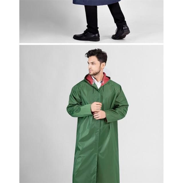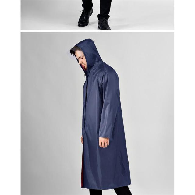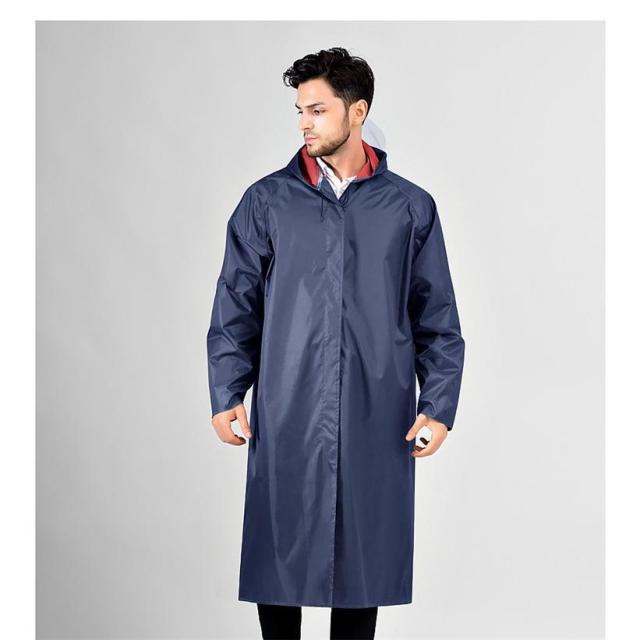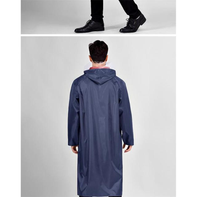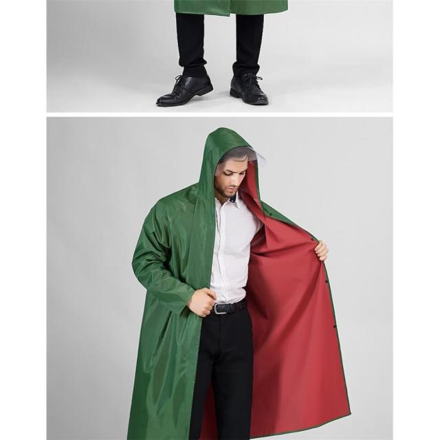 雨よけ用の大きなつばは透明で視界を遮らないレインコートです。