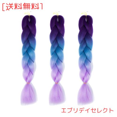 Feibin 全30色 ウィッグ エクステンション 3本セット ブレイズ 編み込み グラデーション 三つ編み ヘアアクセサリー 盛りアップ つけウィ