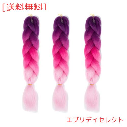 Feibin 全30色 ウィッグ エクステンション 3本セット ブレイズ 編み込み グラデーション 三つ編み ヘアアクセサリー 盛りアップ つけウィ