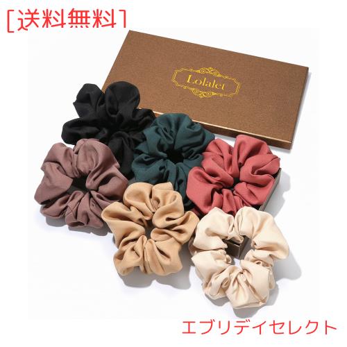 Lolalet シュシュ リボン 6色 ヘアゴム 大人 シルク光沢 立体感 おしゃれ 髪留め