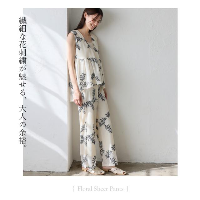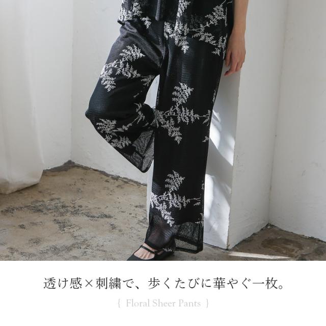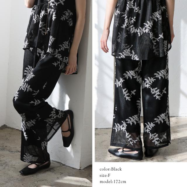 花柄刺繍シアーパンツ