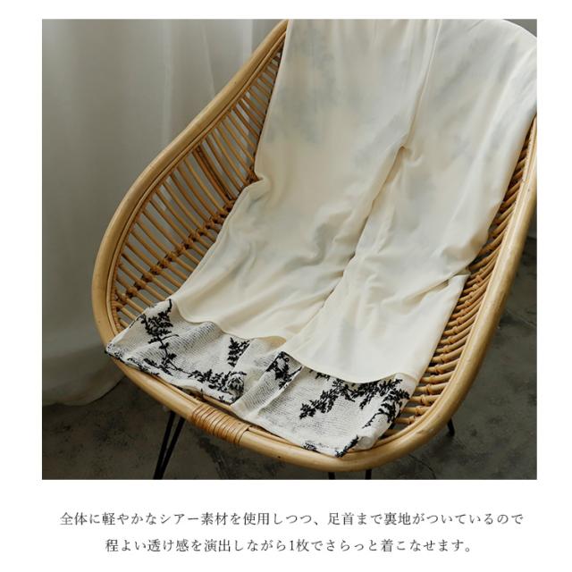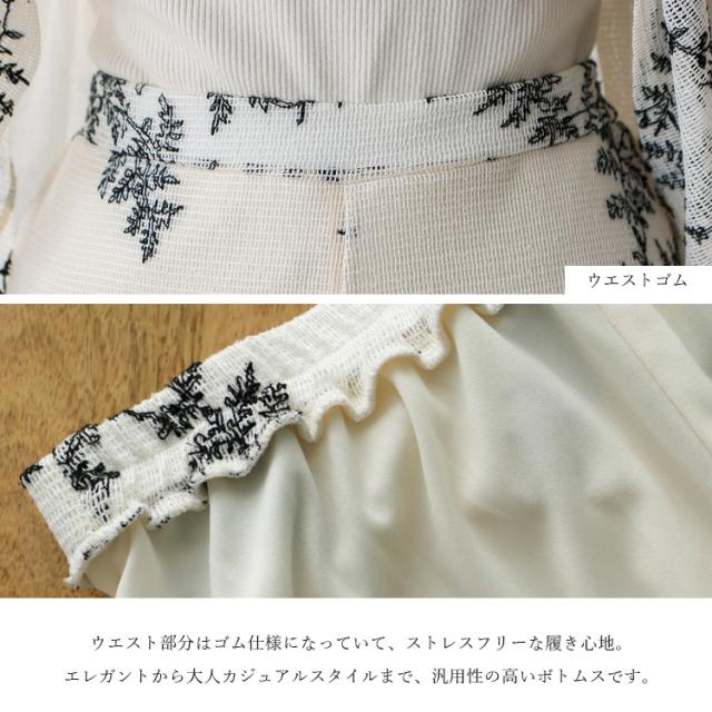 【セットアップ可】ワイドパンツ レディース 裏地あり 春 夏 花柄 ボタニカル柄 刺繍 上品 きれいめ 大人 ウエストゴム 高身長 ロングパンツ ボトムス 体型カバー 透け感 シアー パーティー 結婚式 二次会 blc-y29510 【メール便】