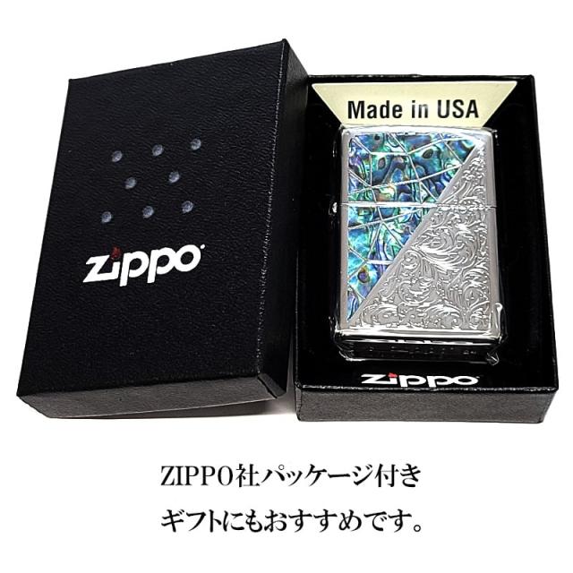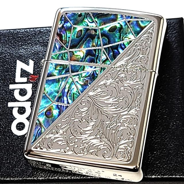 ZIPPO ライター アラベスク シェル模様 おしゃれ ジッポ トライアングル シルバー グリーン 鏡面仕上げ 彫刻 かっこいい メンズ ギフト