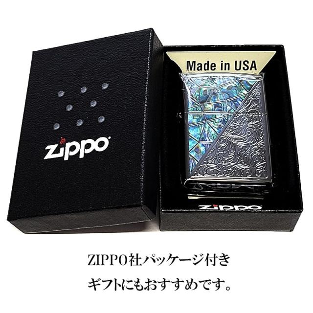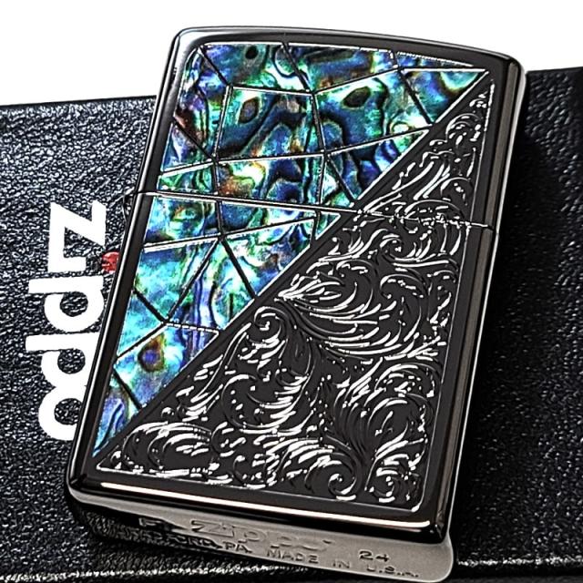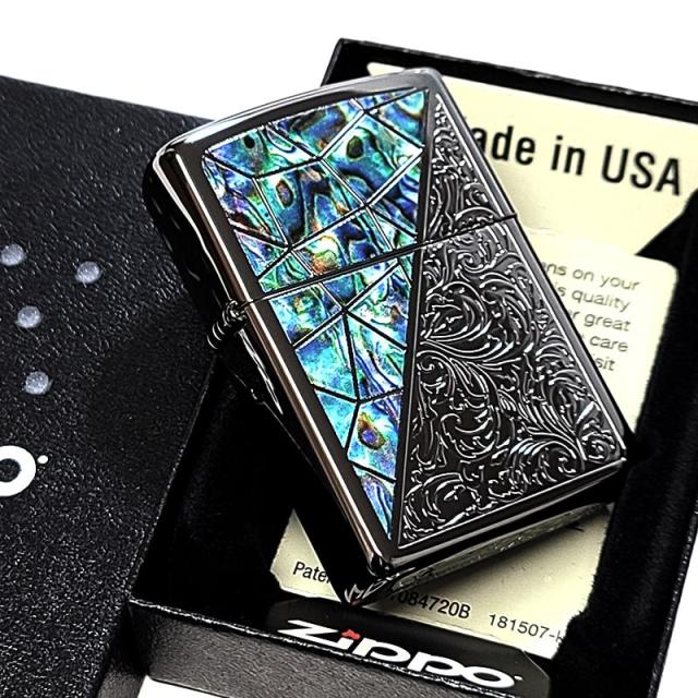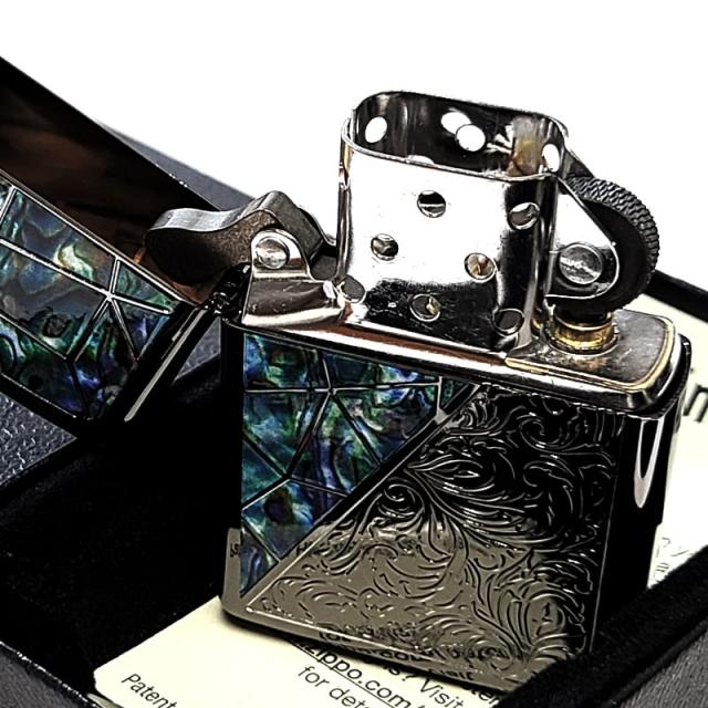 ZIPPO アラベスク シェル模様 トライアングル ジッポ ライター ブラックニッケル グリーン 彫刻 黒 かっこいい メンズ ギフト
