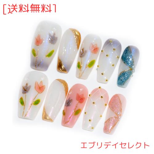 ◆商品名:Sun&Beam Nails 手作り ネイルチップ ミディアム ロング バレリーナ ピンク ブルー ゴールド 人気 3D おしゃれ 可愛い デザイン つけ爪