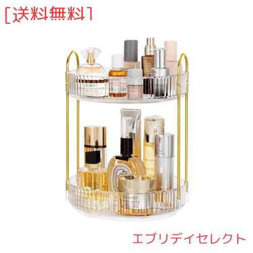 コスメ収納 360回転式 透明 化粧品収納ボックス 小物入れ 大容量化粧台 洗面所収納ボックス 整理簡単 多機能 化粧品 収納 (2層 透明)