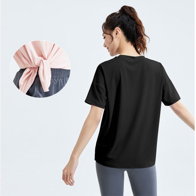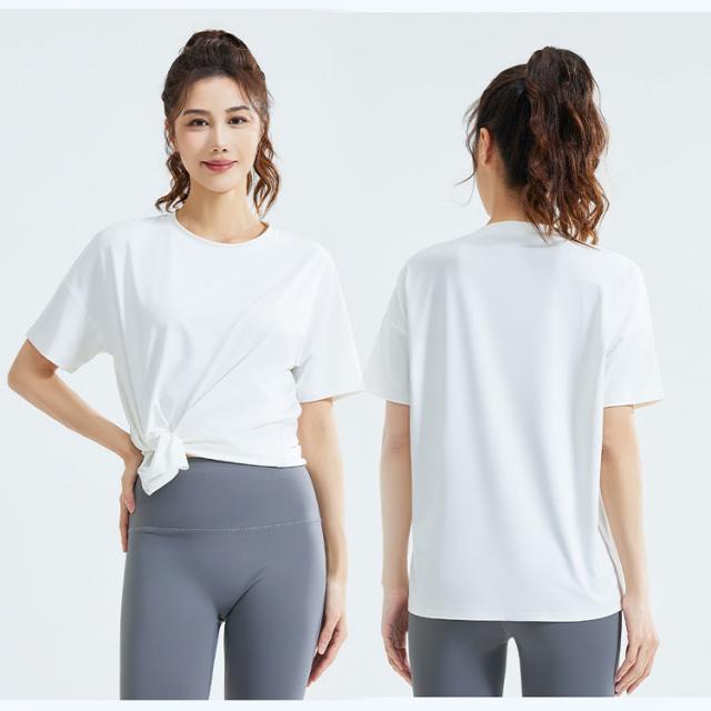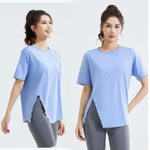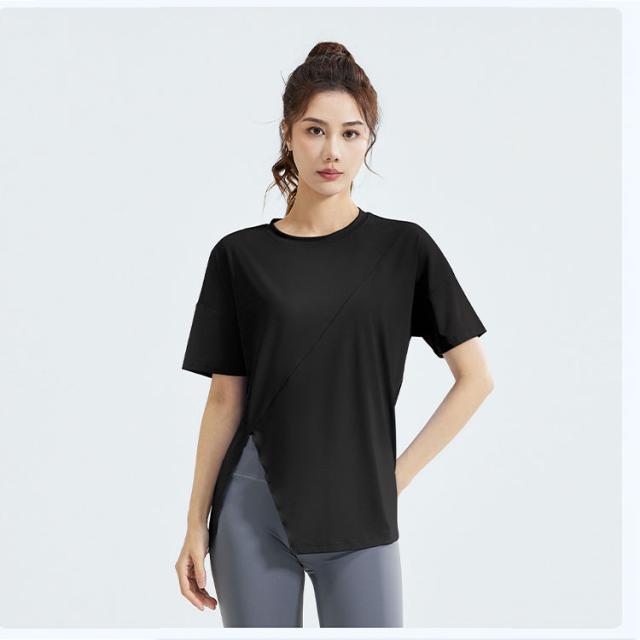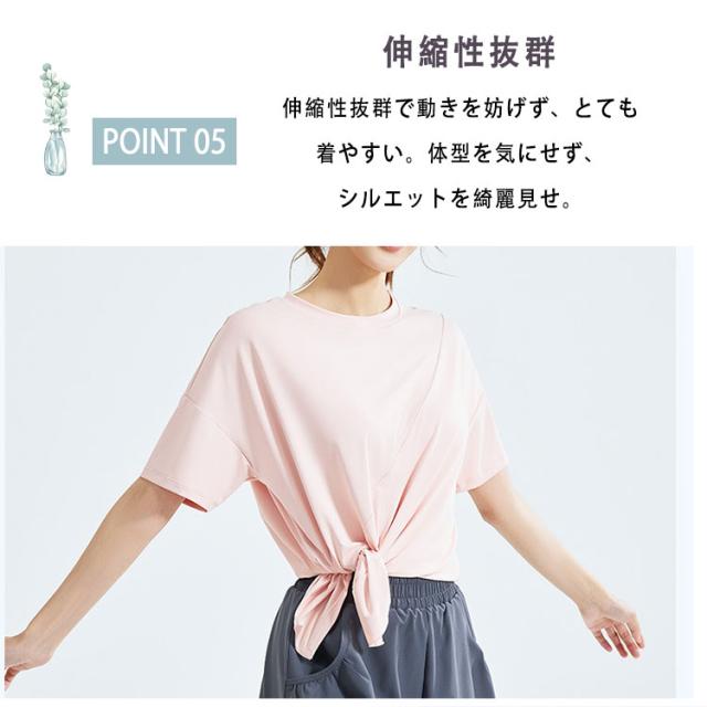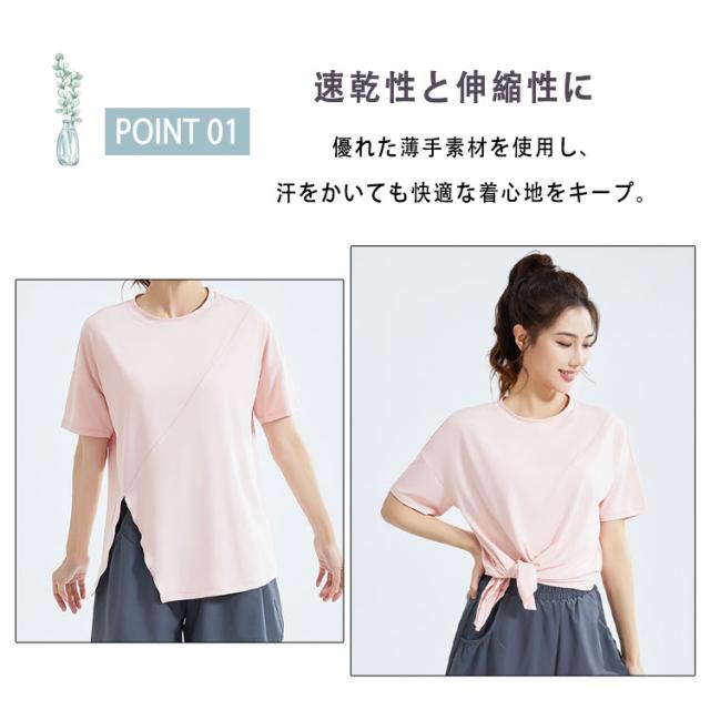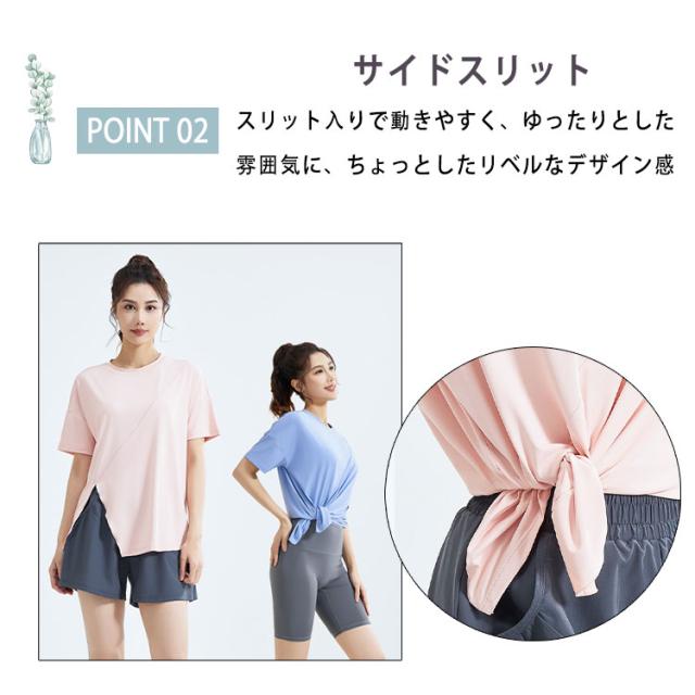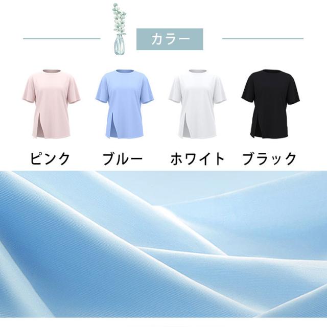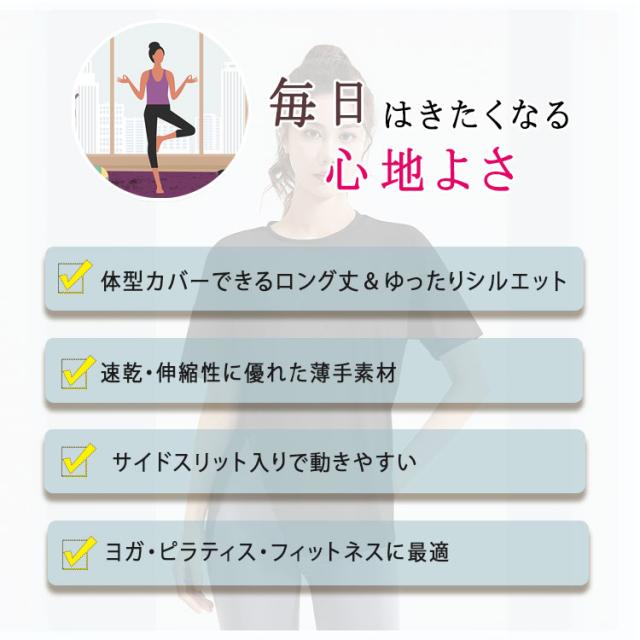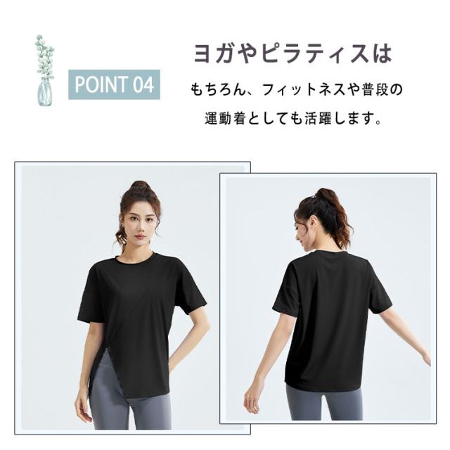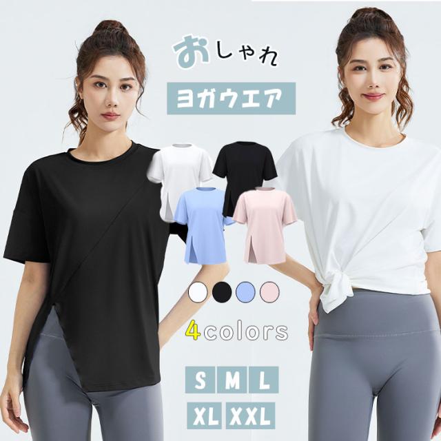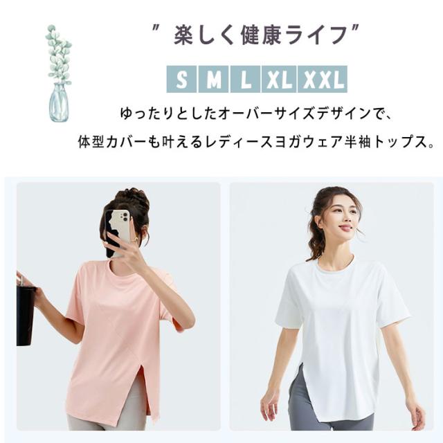 ヨガウェア トップス レディース 半袖 ピラティスウェア 体型カバー ロング丈 おしゃれ ゆったり オーバーサイズ スリット入り 速乾 薄手 伸縮性 スポーツウェア 白 黒